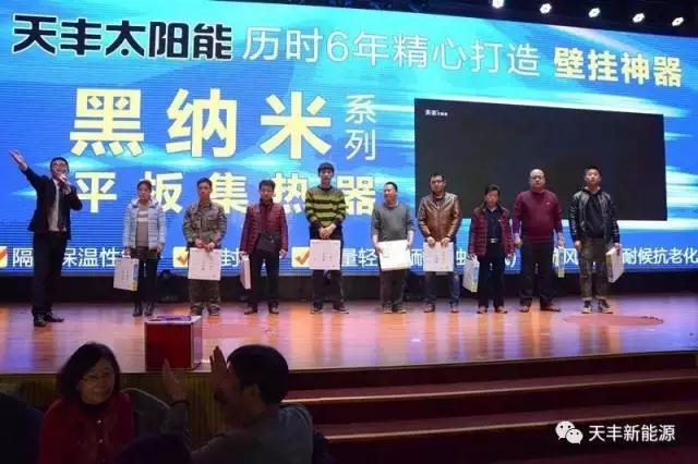天豐太陽能作為臨沂市家門口企業(yè)應(yīng)邀參加本次展會,參展人數(shù)絡(luò)繹不絕。尤其是今年,天豐公司推出了新產(chǎn)品——黑納米系列平板集熱器以及新款陽臺壁掛,吸引了各地經(jīng)銷商紛紛駐足參觀詢問,天豐公司主打品牌太陽能依舊是本次展會的寵兒。中國紅,紅透中國大江南北;中國夢,夢圓中國新能源;中國藍,力助節(jié)能環(huán)保;中國龍,龍騰四海譜新篇。